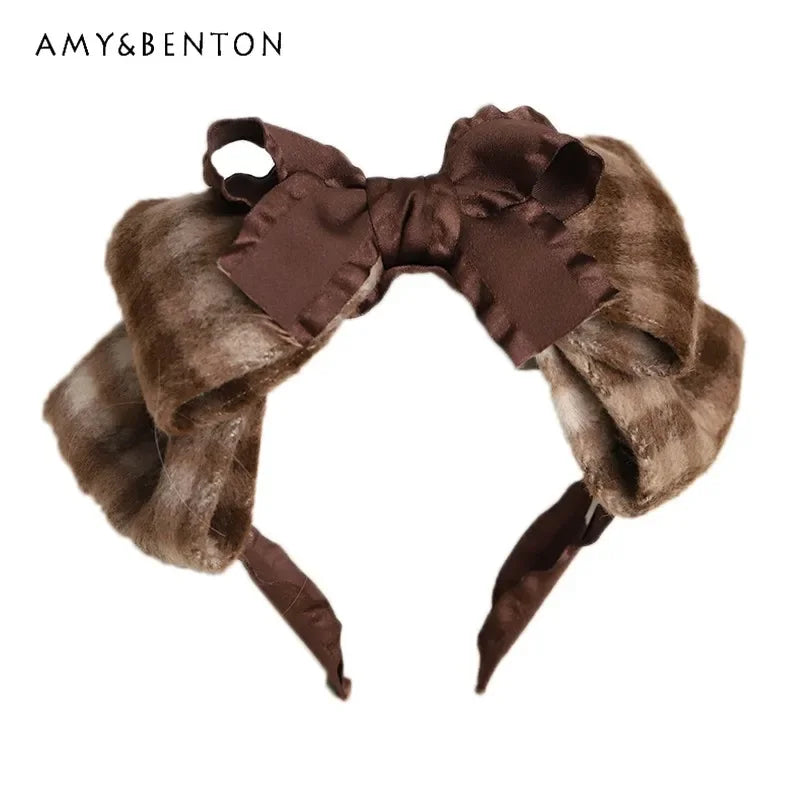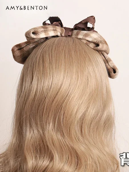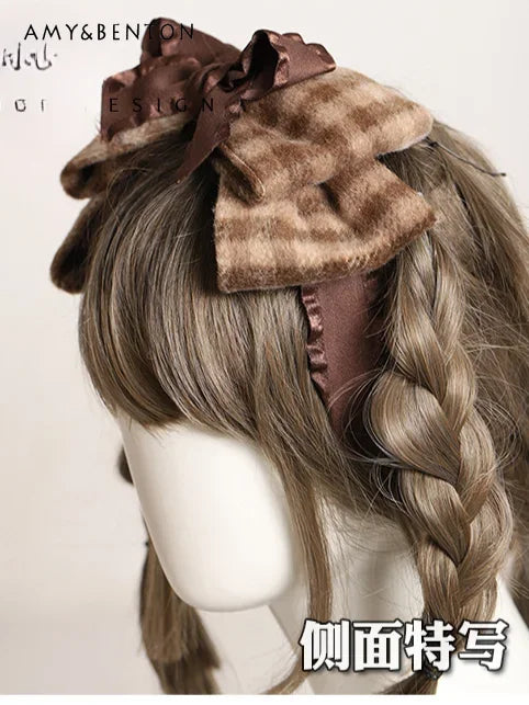 Retro Sweet Plaid Hair Band – Kawaii Lolita Woolen Bow Hair Accessories